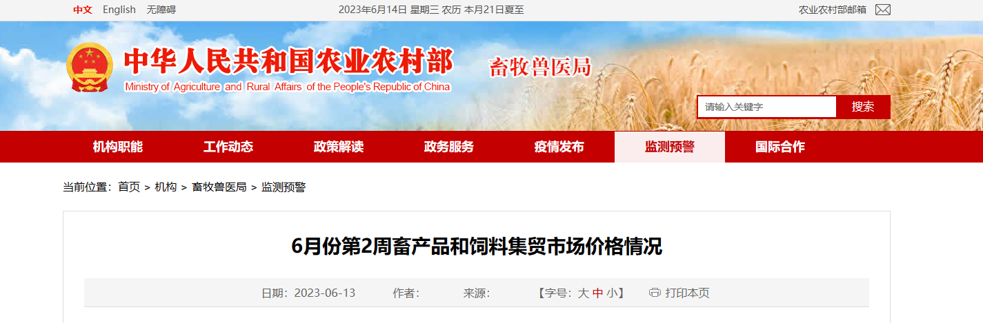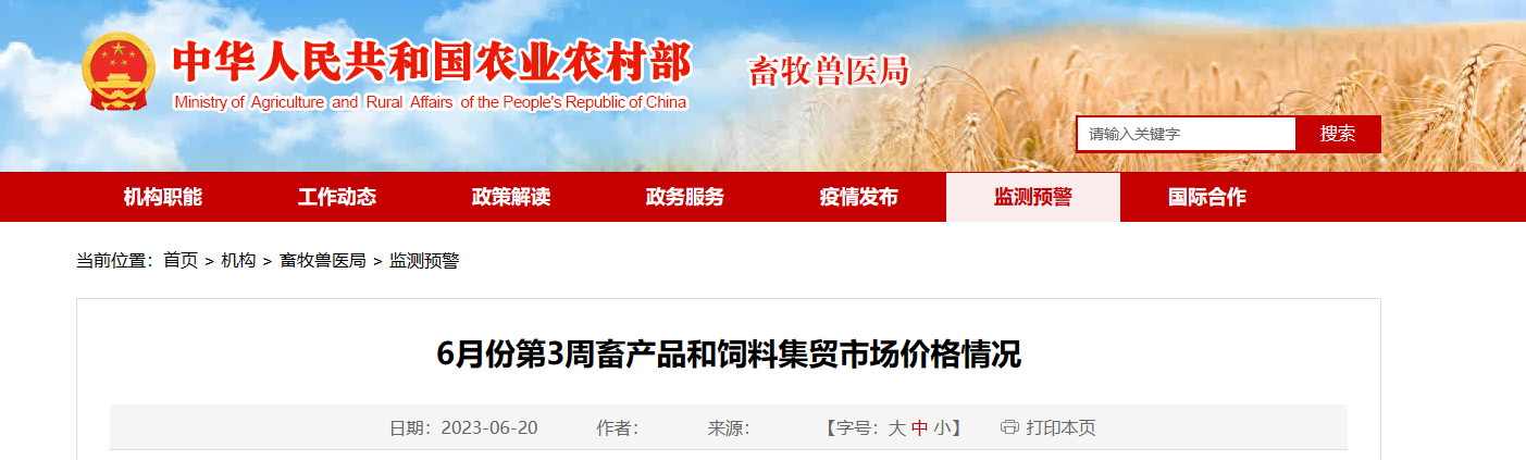 農(nóng)業(yè)農(nóng)村部:2023年第25周瘦肉型白條豬肉出廠價格監(jiān)測周報...