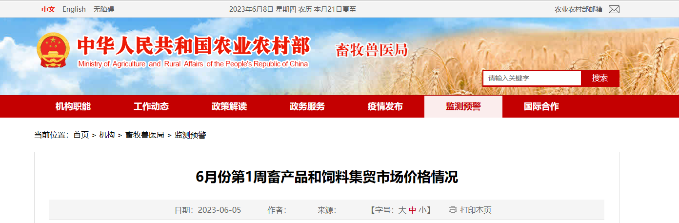 農(nóng)業(yè)農(nóng)村部等五部門聯(lián)合發(fā)布2023年4月份生豬產(chǎn)品數(shù)據(jù)...