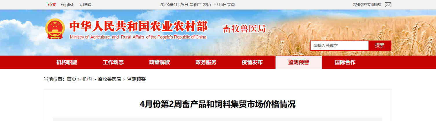 4月份第2周畜產(chǎn)品和飼料集貿(mào)市場價格情況...